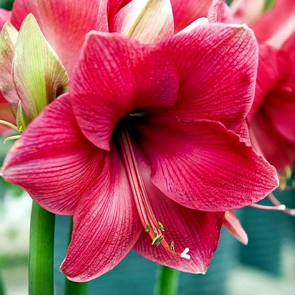 Amaryllis is a striking bulbous flowering plant best known for its large, trumpet-shaped blooms that make it a popular choice for indoor flowering during winter months. The most commonly cultivated species, Hippeastrum (often called amaryllis in horticulture), produces dramatic flowers that can reach 6-8 inches across, typically in shades of red, pink, white, orange, or striped combinations.
