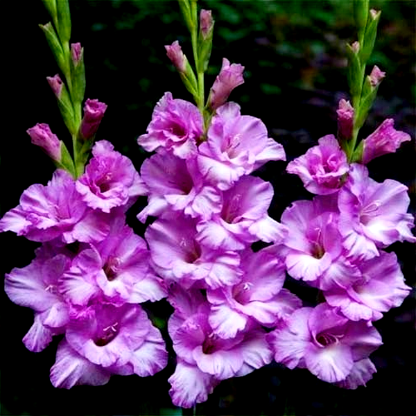 Gladiolus is a genus of perennial flowering plants that grow from corms (bulb-like underground storage organs) and are beloved for their tall, dramatic flower spikes. These striking plants produce sword-shaped leaves and towering stems that can reach 2-5 feet in height, topped with multiple funnel-shaped flowers arranged in dense, vertical clusters called racemes.