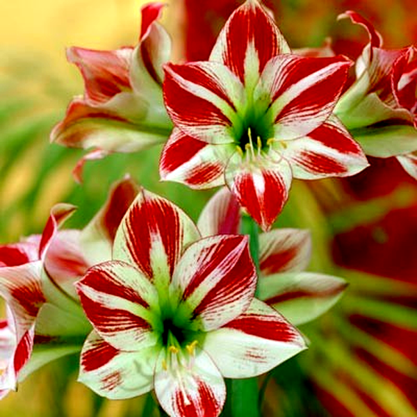 Amaryllis is a striking bulbous flowering plant best known for its large, trumpet-shaped blooms that make it a popular choice for indoor flowering during winter months. The most commonly cultivated species, Hippeastrum (often called amaryllis in horticulture), produces dramatic flowers that can reach 6-8 inches across, typically in shades of red, pink, white, orange, or striped combinations.