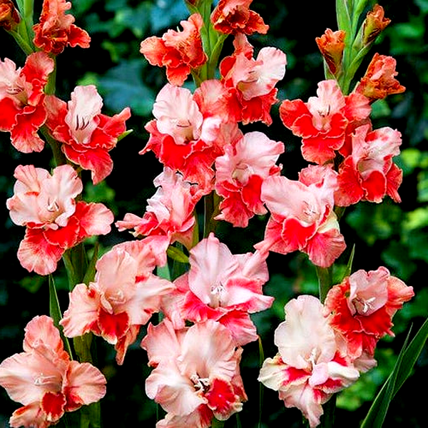 Native primarily to South Africa, with some species from the Mediterranean region, gladioli have become popular garden plants worldwide. They bloom in summer and are prized as cut flowers due to their impressive height and long-lasting blooms. The plants prefer full sun and well-drained soil, and in colder climates, the corms must be lifted and stored indoors during winter. Gladioli are excellent for creating dramatic vertical elements in flower gardens and are commonly grown in rows for cutting. There are over 260 species and countless cultivars, ranging from miniature varieties to giant exhibition types.