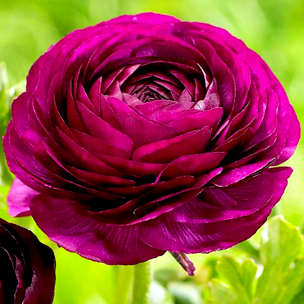 In cultivation, the Persian buttercup (Ranunculus asiaticus) has been developed into spectacular garden flowers with densely layered, papery petals that create full, rose-like blooms in vibrant colors including pink, red, orange, yellow, and white. These cultivated varieties are popular in wedding bouquets and floral arrangements for their romantic, ruffled appearance and long-lasting blooms.