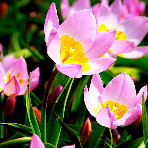 Tulips are iconic spring-blooming bulbs renowned for their elegant cup-shaped flowers and wide array of colors and forms. These bulbs produce single stems with distinctive flowers that can be found in virtually every color except true blue, including solid hues, bi-colors, and striking patterns with stripes, flames, or picotee edges.