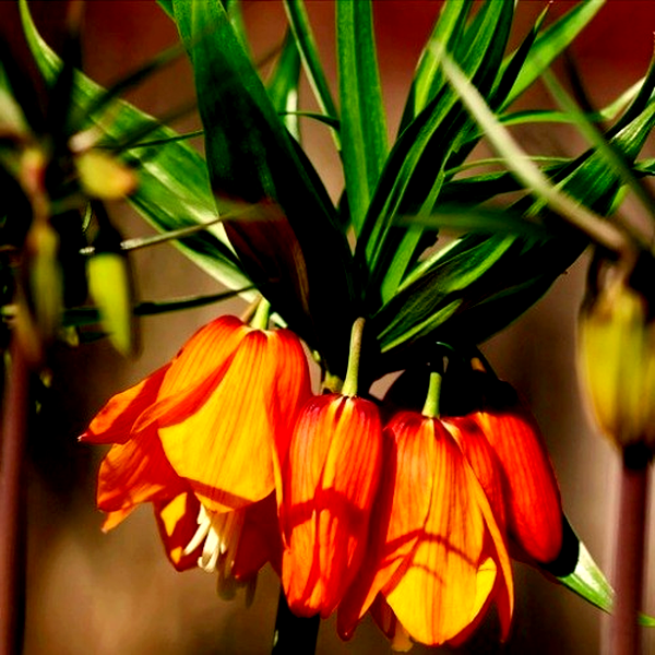 The flowers typically nod downward, hanging like lanterns from sturdy stems, and many species emit a subtle, sometimes musky fragrance. In gardens, fritillarias are prized for their unusual beauty and architectural form, though they can be challenging to grow as they often require specific soil conditions and may take several years to establish.
