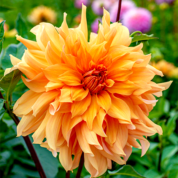 Dahlia is a genus of bushy, tuberous perennial plants native to Mexico and Central America. These popular garden flowers are prized for their spectacular blooms, which come in an extraordinary range of colors, sizes, and forms. Dahlia flowers can be as small as a coin or as large as dinner plates, with some varieties reaching over 12 inches across.