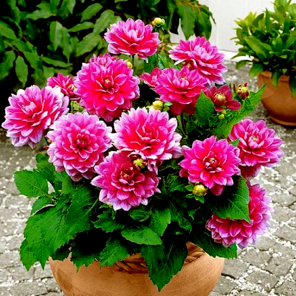 Dahlias grow from underground tubers and typically reach heights of 1-6 feet, depending on the variety. They bloom from midsummer until the first frost, making them valuable for extended garden color. The plants prefer full sun and well-drained, fertile soil. In colder climates, the tubers must be lifted and stored indoors during winter. Dahlias are excellent for cut flowers and are popular in both cottage gardens and formal landscapes. There are over 40 species and thousands of cultivars, making them one of the most diverse flowering plants available to gardeners.