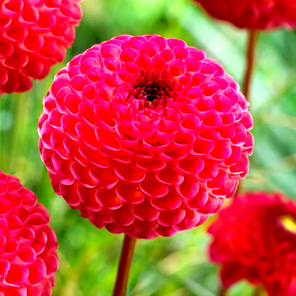 Dahlias grow from underground tubers and typically reach heights of 1-6 feet, depending on the variety. They bloom from midsummer until the first frost, making them valuable for extended garden color. The plants prefer full sun and well-drained, fertile soil. In colder climates, the tubers must be lifted and stored indoors during winter. Dahlias are excellent for cut flowers and are popular in both cottage gardens and formal landscapes. There are over 40 species and thousands of cultivars, making them one of the most diverse flowering plants available to gardeners.