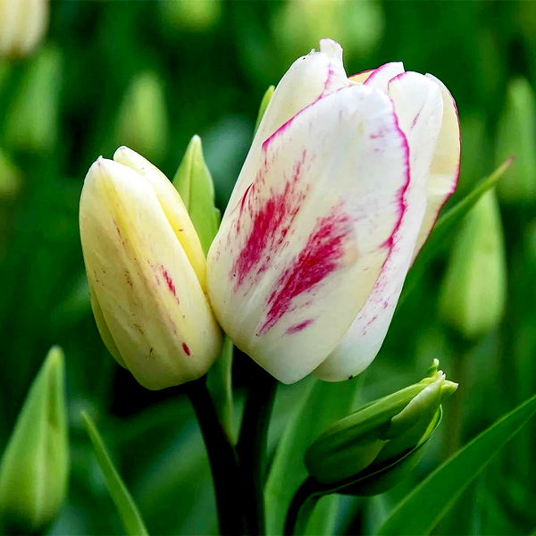 Tulips are iconic spring-blooming bulbs renowned for their elegant cup-shaped flowers and wide array of colors and forms. These bulbs produce single stems with distinctive flowers that can be found in virtually every color except true blue, including solid hues, bi-colors, and striking patterns with stripes, flames, or picotee edges.