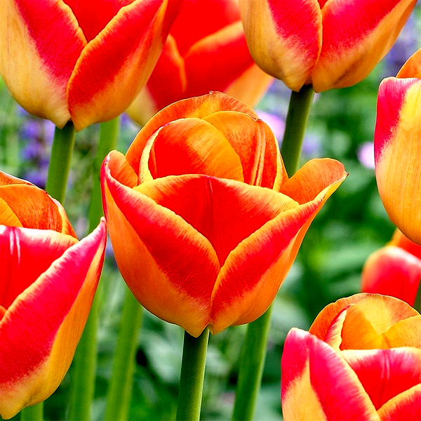 Tulips are iconic spring-blooming bulbs renowned for their elegant cup-shaped flowers and wide array of colors and forms. These bulbs produce single stems with distinctive flowers that can be found in virtually every color except true blue, including solid hues, bi-colors, and striking patterns with stripes, flames, or picotee edges.