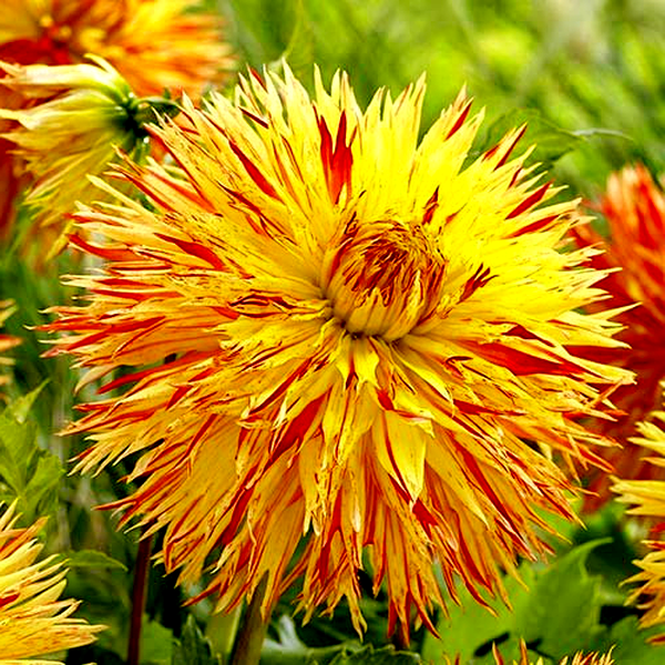 Dahlias grow from underground tubers and typically reach heights of 1-6 feet, depending on the variety. They bloom from midsummer until the first frost, making them valuable for extended garden color. The plants prefer full sun and well-drained, fertile soil. In colder climates, the tubers must be lifted and stored indoors during winter. Dahlias are excellent for cut flowers and are popular in both cottage gardens and formal landscapes. There are over 40 species and thousands of cultivars, making them one of the most diverse flowering plants available to gardeners.
