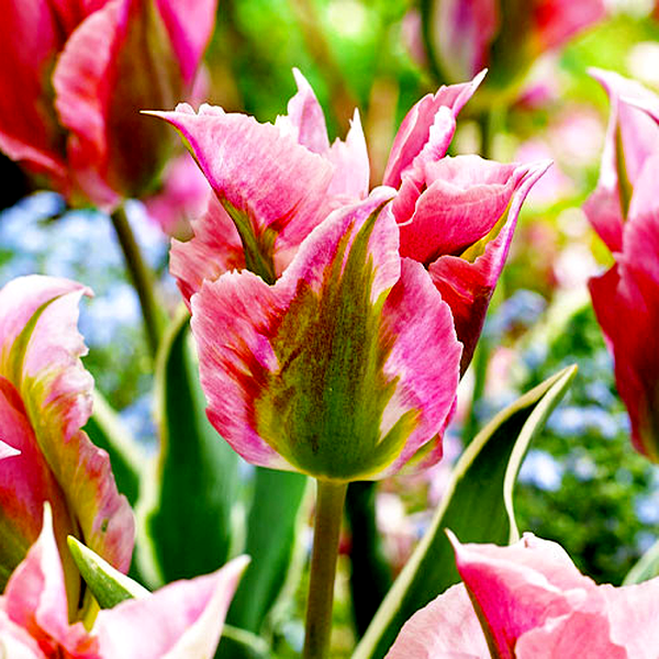 Tulips are iconic spring-blooming bulbs renowned for their elegant cup-shaped flowers and wide array of colors and forms. These bulbs produce single stems with distinctive flowers that can be found in virtually every color except true blue, including solid hues, bi-colors, and striking patterns with stripes, flames, or picotee edges.