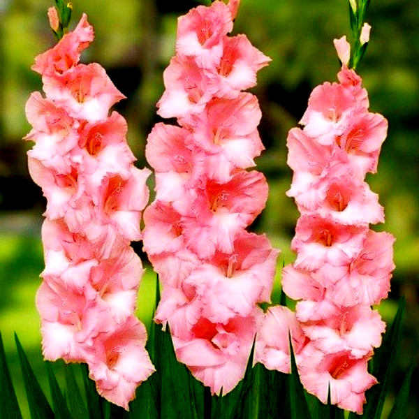 Gladiolus is a genus of perennial flowering plants that grow from corms (bulb-like underground storage organs) and are beloved for their tall, dramatic flower spikes. These striking plants produce sword-shaped leaves and towering stems that can reach 2-5 feet in height, topped with multiple funnel-shaped flowers arranged in dense, vertical clusters called racemes.