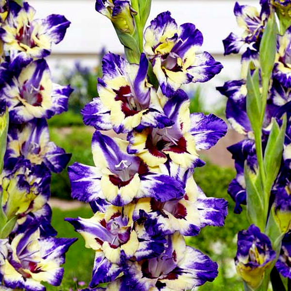 Native primarily to South Africa, with some species from the Mediterranean region, gladioli have become popular garden plants worldwide. They bloom in summer and are prized as cut flowers due to their impressive height and long-lasting blooms. The plants prefer full sun and well-drained soil, and in colder climates, the corms must be lifted and stored indoors during winter. Gladioli are excellent for creating dramatic vertical elements in flower gardens and are commonly grown in rows for cutting. There are over 260 species and countless cultivars, ranging from miniature varieties to giant exhibition types.