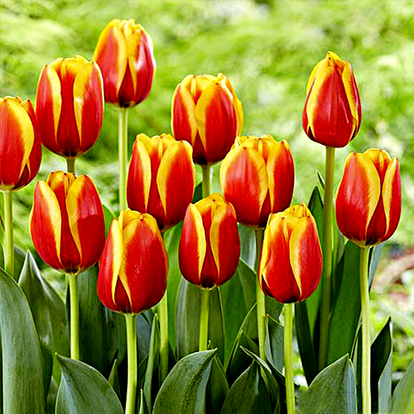 Tulips are iconic spring-blooming bulbs renowned for their elegant cup-shaped flowers and wide array of colors and forms. These bulbs produce single stems with distinctive flowers that can be found in virtually every color except true blue, including solid hues, bi-colors, and striking patterns with stripes, flames, or picotee edges.