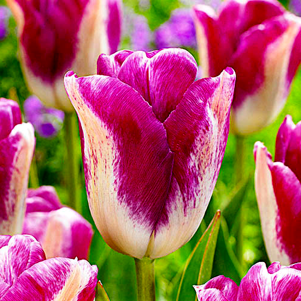Tulips are iconic spring-blooming bulbs renowned for their elegant cup-shaped flowers and wide array of colors and forms. These bulbs produce single stems with distinctive flowers that can be found in virtually every color except true blue, including solid hues, bi-colors, and striking patterns with stripes, flames, or picotee edges.