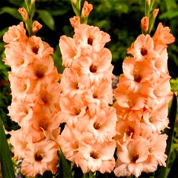 Gladiolus is a genus of perennial flowering plants that grow from corms (bulb-like underground storage organs) and are beloved for their tall, dramatic flower spikes. These striking plants produce sword-shaped leaves and towering stems that can reach 2-5 feet in height, topped with multiple funnel-shaped flowers arranged in dense, vertical clusters called racemes.