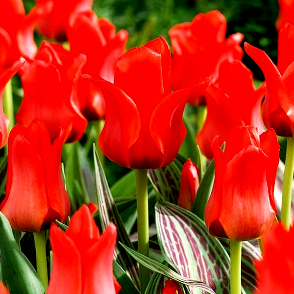 Tulips are iconic spring-blooming bulbs renowned for their elegant cup-shaped flowers and wide array of colors and forms. These bulbs produce single stems with distinctive flowers that can be found in virtually every color except true blue, including solid hues, bi-colors, and striking patterns with stripes, flames, or picotee edges.