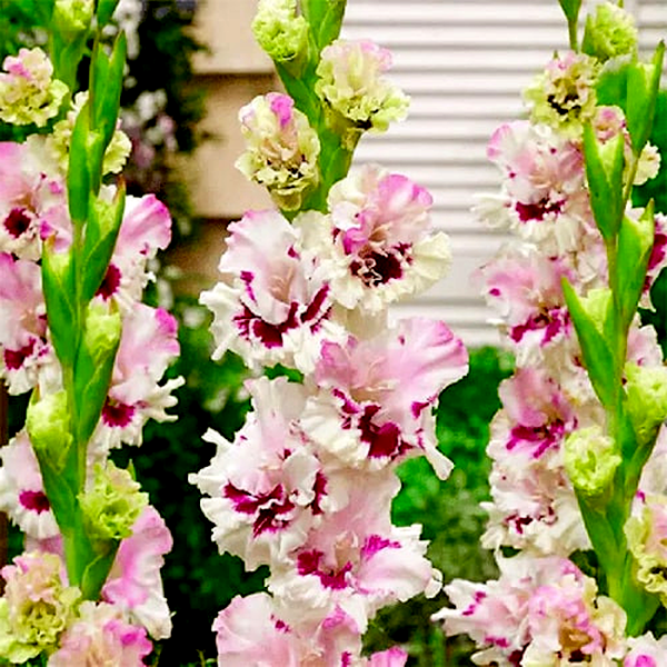 Native primarily to South Africa, with some species from the Mediterranean region, gladioli have become popular garden plants worldwide. They bloom in summer and are prized as cut flowers due to their impressive height and long-lasting blooms. The plants prefer full sun and well-drained soil, and in colder climates, the corms must be lifted and stored indoors during winter. Gladioli are excellent for creating dramatic vertical elements in flower gardens and are commonly grown in rows for cutting. There are over 260 species and countless cultivars, ranging from miniature varieties to giant exhibition types.