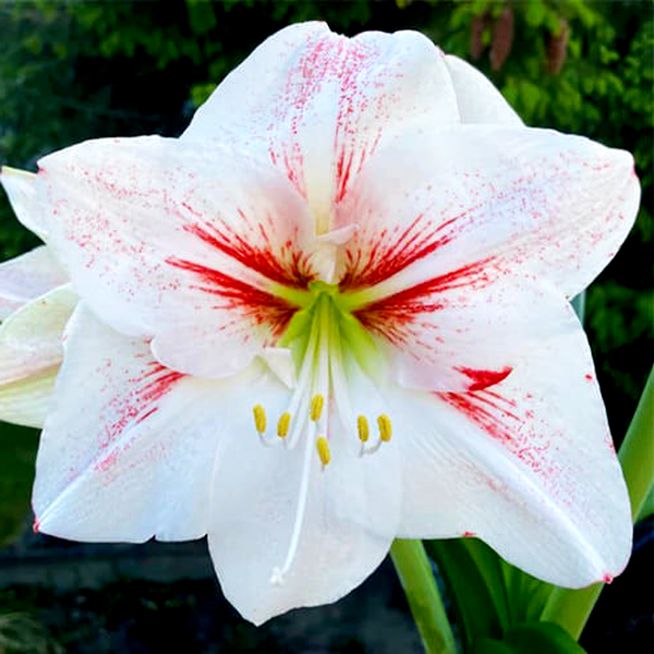 The plant grows from a large, rounded bulb that sends up a thick, hollow flower stalk called a scape, which can reach 12-24 inches tall. Each stalk typically bears 2-6 large, lily-like flowers that bloom in succession. The strap-shaped leaves are glossy green and usually emerge after or alongside the flowers, growing up to 18 inches long.