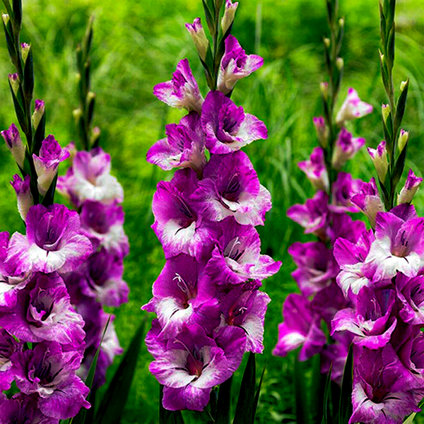 Native primarily to South Africa, with some species from the Mediterranean region, gladioli have become popular garden plants worldwide. They bloom in summer and are prized as cut flowers due to their impressive height and long-lasting blooms. The plants prefer full sun and well-drained soil, and in colder climates, the corms must be lifted and stored indoors during winter. Gladioli are excellent for creating dramatic vertical elements in flower gardens and are commonly grown in rows for cutting. There are over 260 species and countless cultivars, ranging from miniature varieties to giant exhibition types.