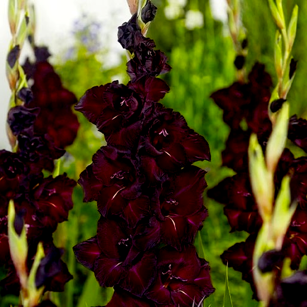 Native primarily to South Africa, with some species from the Mediterranean region, gladioli have become popular garden plants worldwide. They bloom in summer and are prized as cut flowers due to their impressive height and long-lasting blooms. The plants prefer full sun and well-drained soil, and in colder climates, the corms must be lifted and stored indoors during winter. Gladioli are excellent for creating dramatic vertical elements in flower gardens and are commonly grown in rows for cutting. There are over 260 species and countless cultivars, ranging from miniature varieties to giant exhibition types.