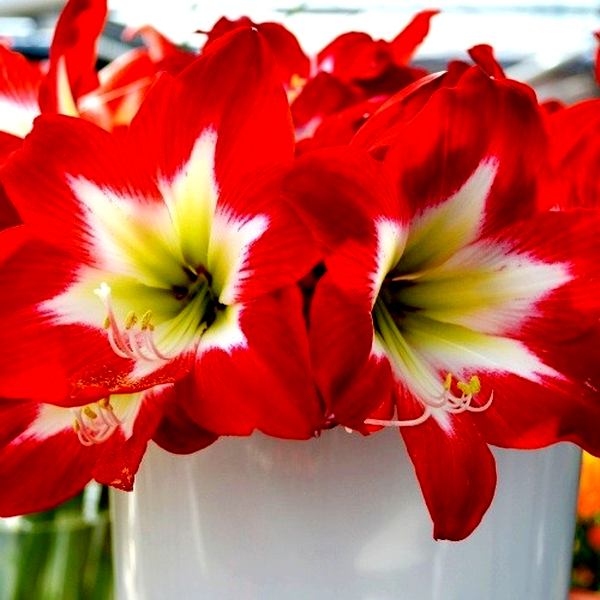 Amaryllis is a striking bulbous flowering plant best known for its large, trumpet-shaped blooms that make it a popular choice for indoor flowering during winter months. The most commonly cultivated species, Hippeastrum (often called amaryllis in horticulture), produces dramatic flowers that can reach 6-8 inches across, typically in shades of red, pink, white, orange, or striped combinations.