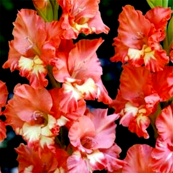 Gladiolus is a genus of perennial flowering plants that grow from corms (bulb-like underground storage organs) and are beloved for their tall, dramatic flower spikes. These striking plants produce sword-shaped leaves and towering stems that can reach 2-5 feet in height, topped with multiple funnel-shaped flowers arranged in dense, vertical clusters called racemes.