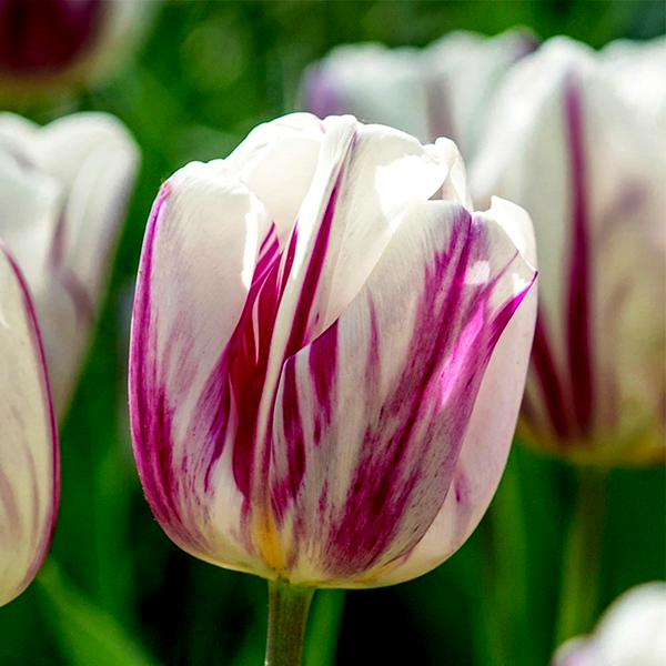 Tulips are iconic spring-blooming bulbs renowned for their elegant cup-shaped flowers and wide array of colors and forms. These bulbs produce single stems with distinctive flowers that can be found in virtually every color except true blue, including solid hues, bi-colors, and striking patterns with stripes, flames, or picotee edges.