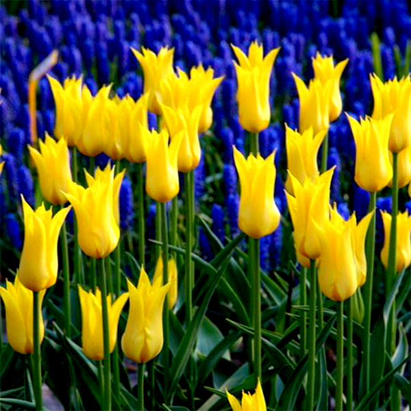 Tulips are iconic spring-blooming bulbs renowned for their elegant cup-shaped flowers and wide array of colors and forms. These bulbs produce single stems with distinctive flowers that can be found in virtually every color except true blue, including solid hues, bi-colors, and striking patterns with stripes, flames, or picotee edges.