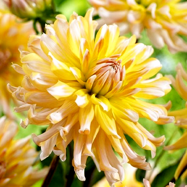 Dahlia is a genus of bushy, tuberous perennial plants native to Mexico and Central America. These popular garden flowers are prized for their spectacular blooms, which come in an extraordinary range of colors, sizes, and forms. Dahlia flowers can be as small as a coin or as large as dinner plates, with some varieties reaching over 12 inches across.