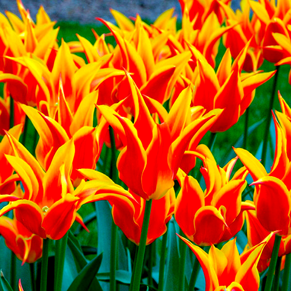 Tulips are iconic spring-blooming bulbs renowned for their elegant cup-shaped flowers and wide array of colors and forms. These bulbs produce single stems with distinctive flowers that can be found in virtually every color except true blue, including solid hues, bi-colors, and striking patterns with stripes, flames, or picotee edges.