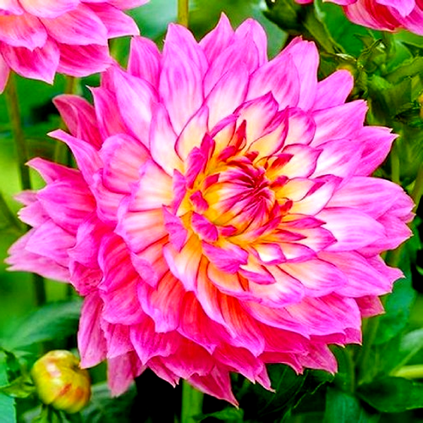 Dahlia is a genus of bushy, tuberous perennial plants native to Mexico and Central America. These popular garden flowers are prized for their spectacular blooms, which come in an extraordinary range of colors, sizes, and forms. Dahlia flowers can be as small as a coin or as large as dinner plates, with some varieties reaching over 12 inches across.