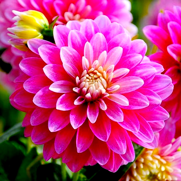 Dahlia is a genus of bushy, tuberous perennial plants native to Mexico and Central America. These popular garden flowers are prized for their spectacular blooms, which come in an extraordinary range of colors, sizes, and forms. Dahlia flowers can be as small as a coin or as large as dinner plates, with some varieties reaching over 12 inches across.