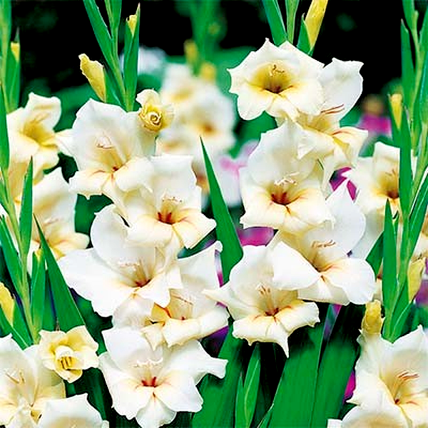 Native primarily to South Africa, with some species from the Mediterranean region, gladioli have become popular garden plants worldwide. They bloom in summer and are prized as cut flowers due to their impressive height and long-lasting blooms. The plants prefer full sun and well-drained soil, and in colder climates, the corms must be lifted and stored indoors during winter. Gladioli are excellent for creating dramatic vertical elements in flower gardens and are commonly grown in rows for cutting. There are over 260 species and countless cultivars, ranging from miniature varieties to giant exhibition types.