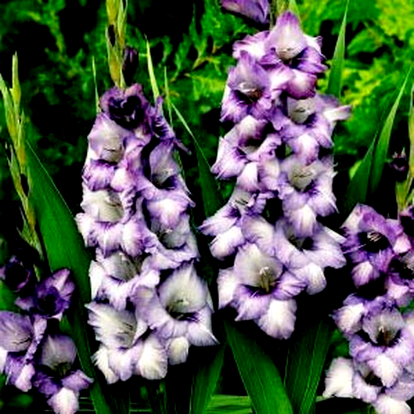 Native primarily to South Africa, with some species from the Mediterranean region, gladioli have become popular garden plants worldwide. They bloom in summer and are prized as cut flowers due to their impressive height and long-lasting blooms. The plants prefer full sun and well-drained soil, and in colder climates, the corms must be lifted and stored indoors during winter. Gladioli are excellent for creating dramatic vertical elements in flower gardens and are commonly grown in rows for cutting. There are over 260 species and countless cultivars, ranging from miniature varieties to giant exhibition types.