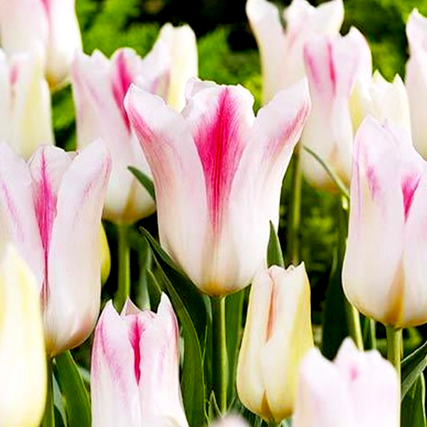 Tulips are iconic spring-blooming bulbs renowned for their elegant cup-shaped flowers and wide array of colors and forms. These bulbs produce single stems with distinctive flowers that can be found in virtually every color except true blue, including solid hues, bi-colors, and striking patterns with stripes, flames, or picotee edges.