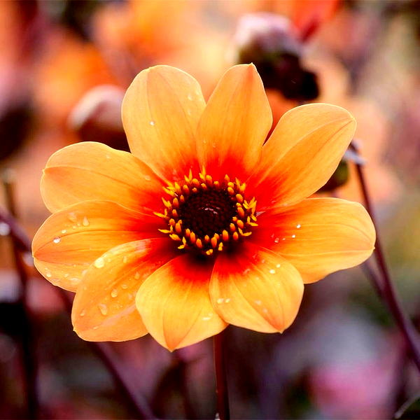 Dahlia is a genus of bushy, tuberous perennial plants native to Mexico and Central America. These popular garden flowers are prized for their spectacular blooms, which come in an extraordinary range of colors, sizes, and forms. Dahlia flowers can be as small as a coin or as large as dinner plates, with some varieties reaching over 12 inches across.