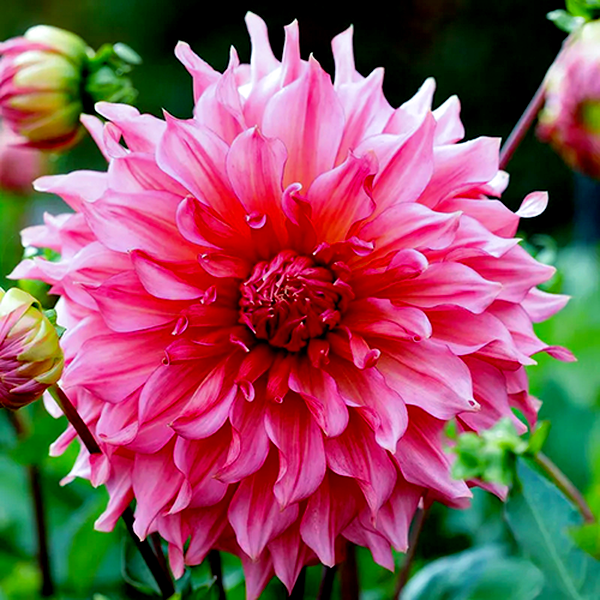 Dahlia is a genus of bushy, tuberous perennial plants native to Mexico and Central America. These popular garden flowers are prized for their spectacular blooms, which come in an extraordinary range of colors, sizes, and forms. Dahlia flowers can be as small as a coin or as large as dinner plates, with some varieties reaching over 12 inches across.