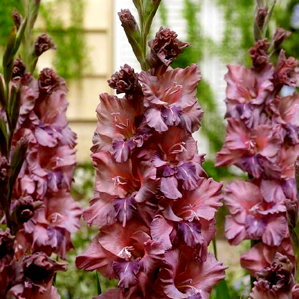 Native primarily to South Africa, with some species from the Mediterranean region, gladioli have become popular garden plants worldwide. They bloom in summer and are prized as cut flowers due to their impressive height and long-lasting blooms. The plants prefer full sun and well-drained soil, and in colder climates, the corms must be lifted and stored indoors during winter. Gladioli are excellent for creating dramatic vertical elements in flower gardens and are commonly grown in rows for cutting. There are over 260 species and countless cultivars, ranging from miniature varieties to giant exhibition types.