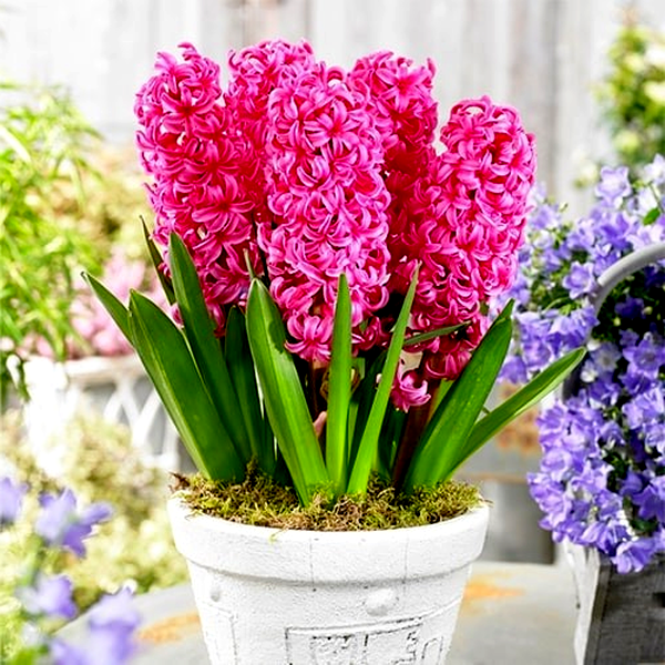 The bulbs are typically planted in fall, about 4-6 inches deep and 4-6 inches apart, in well-draining soil with full to partial sun exposure. Hyacinths are quite cold-hardy and require a period of winter chilling to bloom properly, making them ideal for temperate climates.
