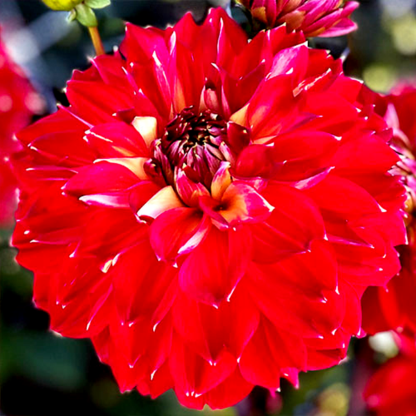 Dahlias grow from underground tubers and typically reach heights of 1-6 feet, depending on the variety. They bloom from midsummer until the first frost, making them valuable for extended garden color. The plants prefer full sun and well-drained, fertile soil. In colder climates, the tubers must be lifted and stored indoors during winter. Dahlias are excellent for cut flowers and are popular in both cottage gardens and formal landscapes. There are over 40 species and thousands of cultivars, making them one of the most diverse flowering plants available to gardeners.
