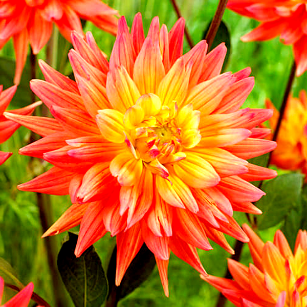 Dahlia is a genus of bushy, tuberous perennial plants native to Mexico and Central America. These popular garden flowers are prized for their spectacular blooms, which come in an extraordinary range of colors, sizes, and forms. Dahlia flowers can be as small as a coin or as large as dinner plates, with some varieties reaching over 12 inches across.