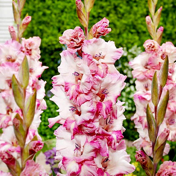 Native primarily to South Africa, with some species from the Mediterranean region, gladioli have become popular garden plants worldwide. They bloom in summer and are prized as cut flowers due to their impressive height and long-lasting blooms. The plants prefer full sun and well-drained soil, and in colder climates, the corms must be lifted and stored indoors during winter. Gladioli are excellent for creating dramatic vertical elements in flower gardens and are commonly grown in rows for cutting. There are over 260 species and countless cultivars, ranging from miniature varieties to giant exhibition types.