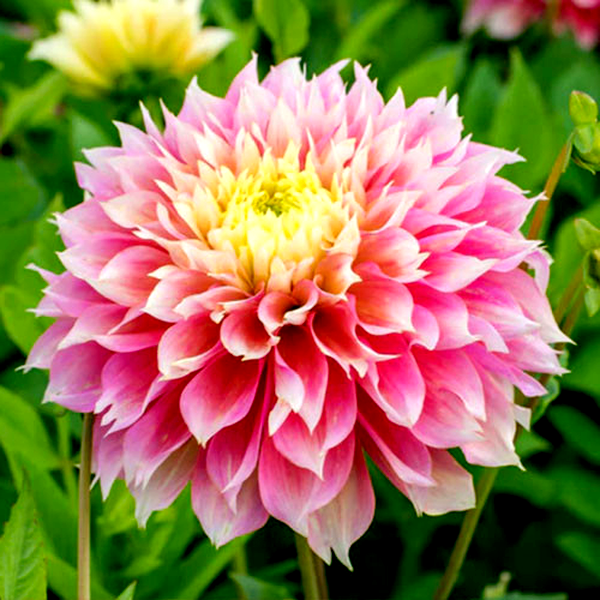 Dahlia is a genus of bushy, tuberous perennial plants native to Mexico and Central America. These popular garden flowers are prized for their spectacular blooms, which come in an extraordinary range of colors, sizes, and forms. Dahlia flowers can be as small as a coin or as large as dinner plates, with some varieties reaching over 12 inches across.