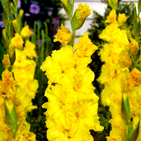 Native primarily to South Africa, with some species from the Mediterranean region, gladioli have become popular garden plants worldwide. They bloom in summer and are prized as cut flowers due to their impressive height and long-lasting blooms. The plants prefer full sun and well-drained soil, and in colder climates, the corms must be lifted and stored indoors during winter. Gladioli are excellent for creating dramatic vertical elements in flower gardens and are commonly grown in rows for cutting. There are over 260 species and countless cultivars, ranging from miniature varieties to giant exhibition types.