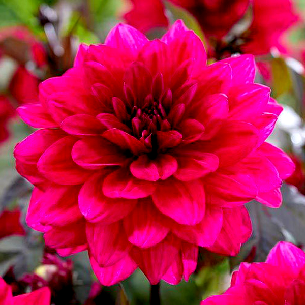 Dahlia is a genus of bushy, tuberous perennial plants native to Mexico and Central America. These popular garden flowers are prized for their spectacular blooms, which come in an extraordinary range of colors, sizes, and forms. Dahlia flowers can be as small as a coin or as large as dinner plates, with some varieties reaching over 12 inches across.