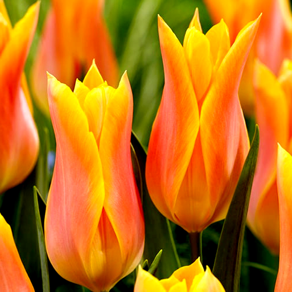 Tulips are iconic spring-blooming bulbs renowned for their elegant cup-shaped flowers and wide array of colors and forms. These bulbs produce single stems with distinctive flowers that can be found in virtually every color except true blue, including solid hues, bi-colors, and striking patterns with stripes, flames, or picotee edges.