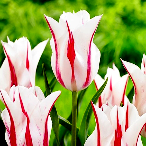 Tulips are iconic spring-blooming bulbs renowned for their elegant cup-shaped flowers and wide array of colors and forms. These bulbs produce single stems with distinctive flowers that can be found in virtually every color except true blue, including solid hues, bi-colors, and striking patterns with stripes, flames, or picotee edges.
