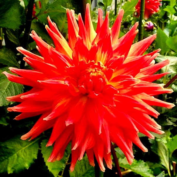 Dahlias grow from underground tubers and typically reach heights of 1-6 feet, depending on the variety. They bloom from midsummer until the first frost, making them valuable for extended garden color. The plants prefer full sun and well-drained, fertile soil. In colder climates, the tubers must be lifted and stored indoors during winter. Dahlias are excellent for cut flowers and are popular in both cottage gardens and formal landscapes. There are over 40 species and thousands of cultivars, making them one of the most diverse flowering plants available to gardeners.