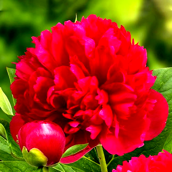 The flowers are the peony's crowning glory - large, full, and opulent with layers of silky petals that can span up to 8 inches across. They bloom in late spring to early summer in shades of pink, red, white, yellow, and coral, often with a rich, sweet fragrance. The buds are particularly charming, resembling tight, rounded marbles before unfurling into their full splendor.