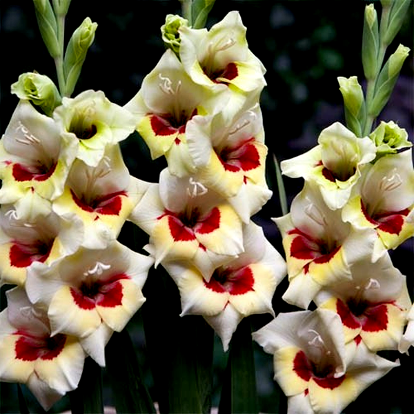 Native primarily to South Africa, with some species from the Mediterranean region, gladioli have become popular garden plants worldwide. They bloom in summer and are prized as cut flowers due to their impressive height and long-lasting blooms. The plants prefer full sun and well-drained soil, and in colder climates, the corms must be lifted and stored indoors during winter. Gladioli are excellent for creating dramatic vertical elements in flower gardens and are commonly grown in rows for cutting. There are over 260 species and countless cultivars, ranging from miniature varieties to giant exhibition types.